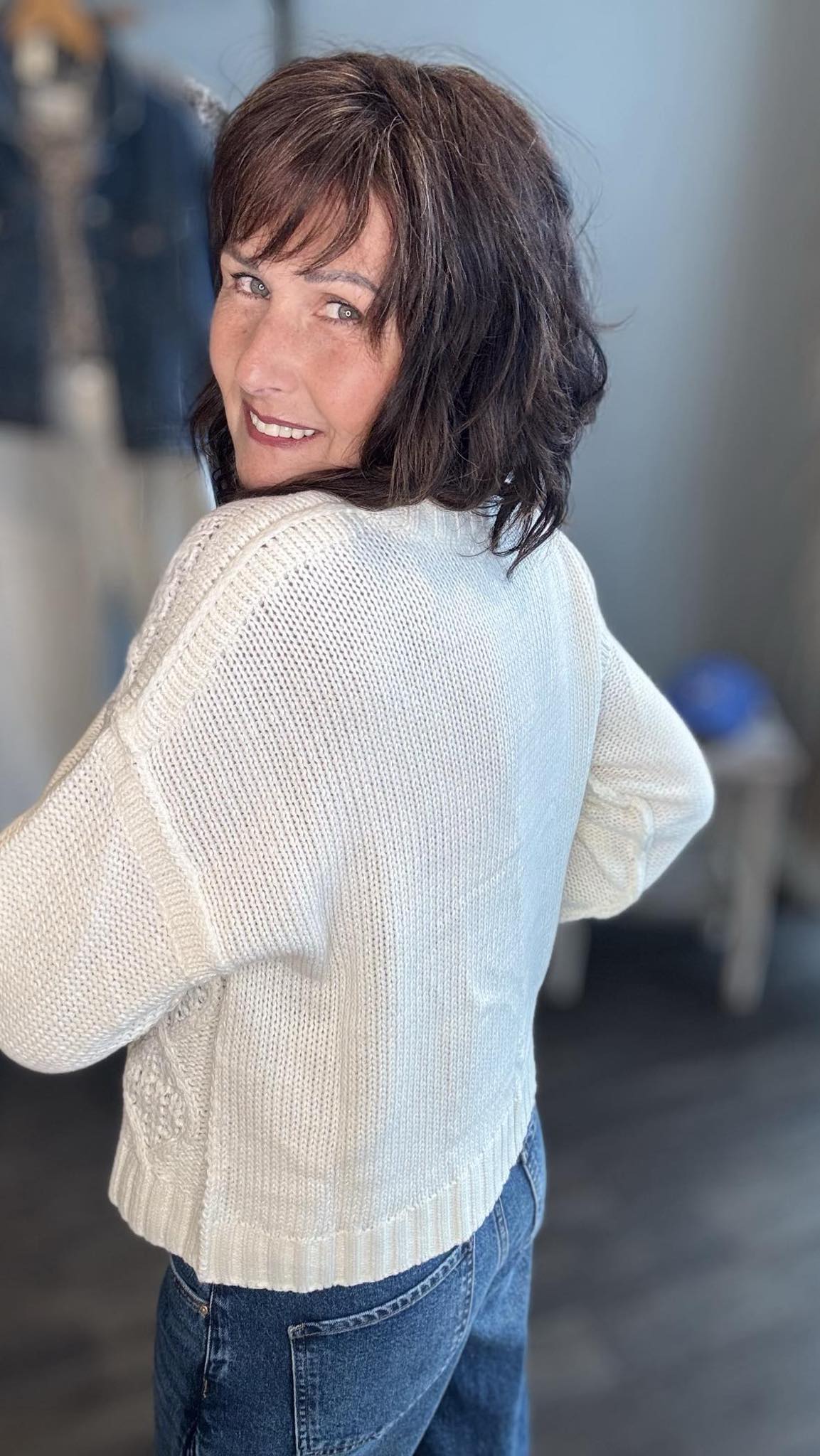 Cozy up in the Valorie Sweater, your new favorite companion for chilly days. With its soft fabric and relaxed fit, it’s perfect for layering or wearing solo. Whether you’re lounging at home or out on an adventure, this sweater adds a playful touch to your look while keeping you comfortably warm.