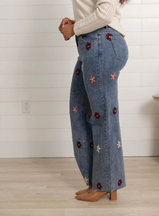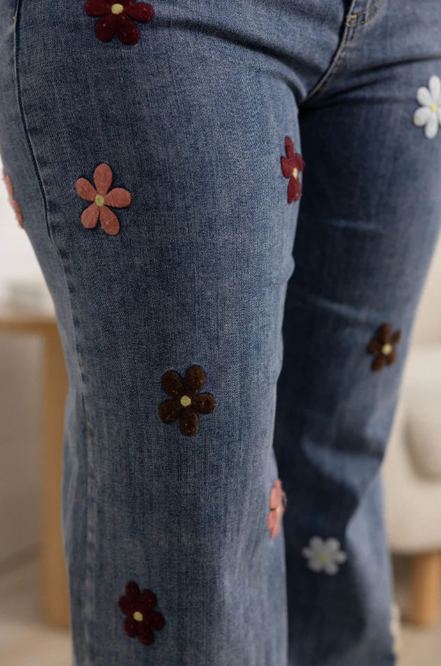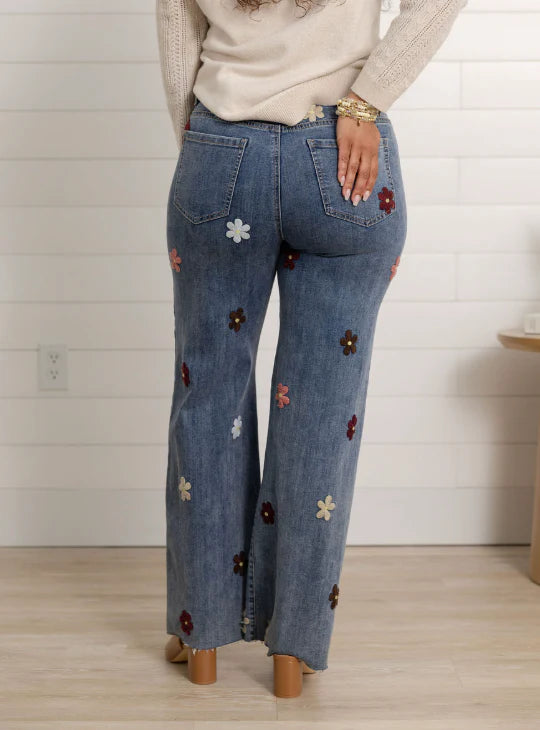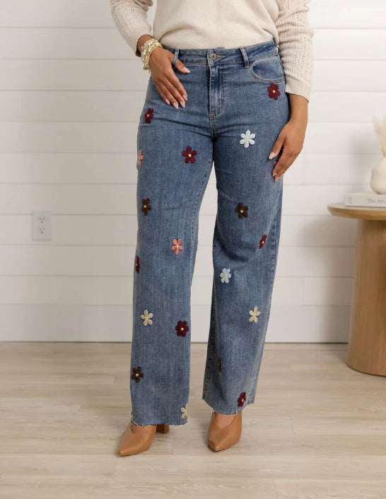 Command attention with these Wide Leg Denim pants embellished with bold flower patches. Designed for a daring style, their relaxed fit offers ease and movement, while the vibrant floral details add an unexpected edge. Perfect for those who want to stand out and express confidence through their wardrobe.